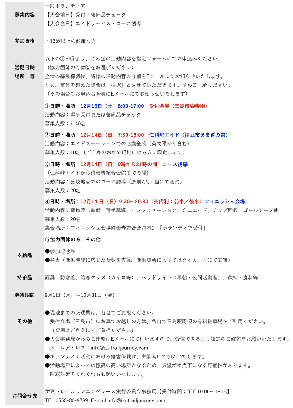 IZU TRAIL Journey 2025「TEAM ITJ(ボランティアスタッフ)」募集概要